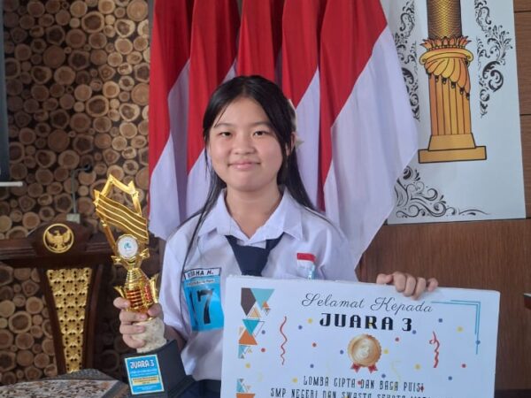 KEISHA HENDRIKCHAN SISWA KELAS VII B REBUT JUARA III LOMBA CIPTA DAN BACA PUISI DALAM RANGKA PERINGATAN BULAN BAHASA DAN HARI GURU TINGKAT KOTA MOJOKERTO