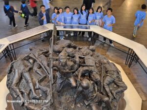 Tujuan berikutnya adalah Museum Sepuluh Nopember di kawasan Tugu Pahlawan. Perjalanan memakan waktu sekitar satu jam. Setibanya di sana pada pukul 11.00, suasana langsung berubah lebih hening dan sejuk. Para siswa memasuki museum dan melihat berbagai rekaman pertempuran 10 November, foto-foto sejarah, serta patung-patung pahlawan. Mereka mendengarkan kisah heroik perjuangan arek-arek Suroboyo melawan penjajah, dan banyak yang tampak terkesan mendengarnya.